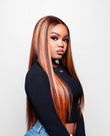 The Shirley Highlight Wig is a waistlength wig It is a stunning auburn brown with highlights ranging from orange to burnt orange.